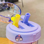 Made from safe, non-toxic materials, this sipper bottle is versatile and suitable for a range of beverages including water, milk, coffee, tea, juice, energy drinks, and milkshakes. It's designed with practicality in mind, equipped with a straw for easy sipping and a wide screw cap adorned with a fancy design that adds a touch of fun while ensuring excellent sealing performance to prevent leaks.