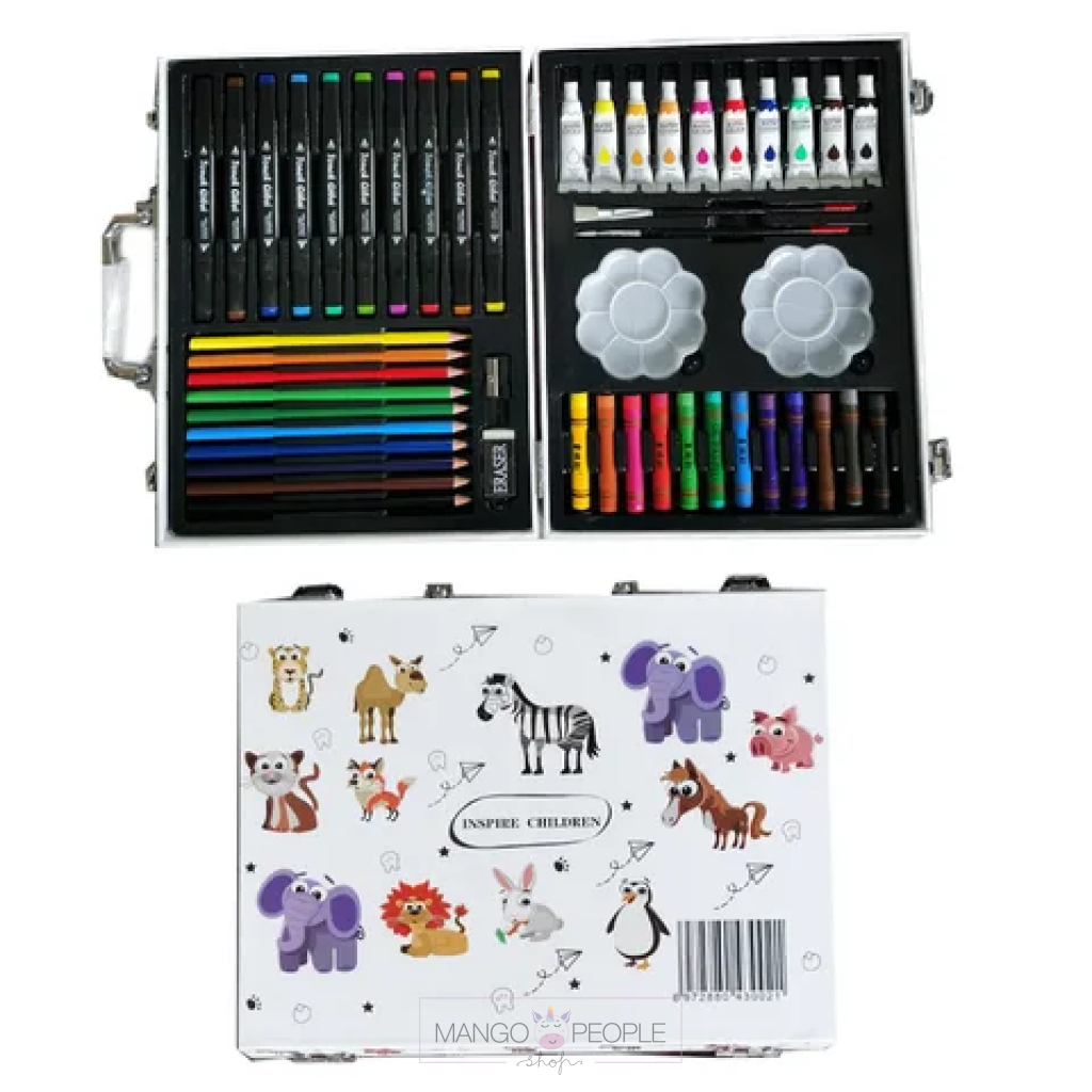 The Animal Design Kids Art and Drawing Set is the perfect kit for young artists who love to explore their creativity. This 49-piece set comes packed with a variety of coloring items, including richly pigmented coloring tools for blending and shading, pencil colors, an eraser, and even tube colors for versatile art projects. All of these supplies are conveniently housed in a lockable mini briefcase with a sturdy handle, making it easy for kids to carry their art set with them wherever they go.