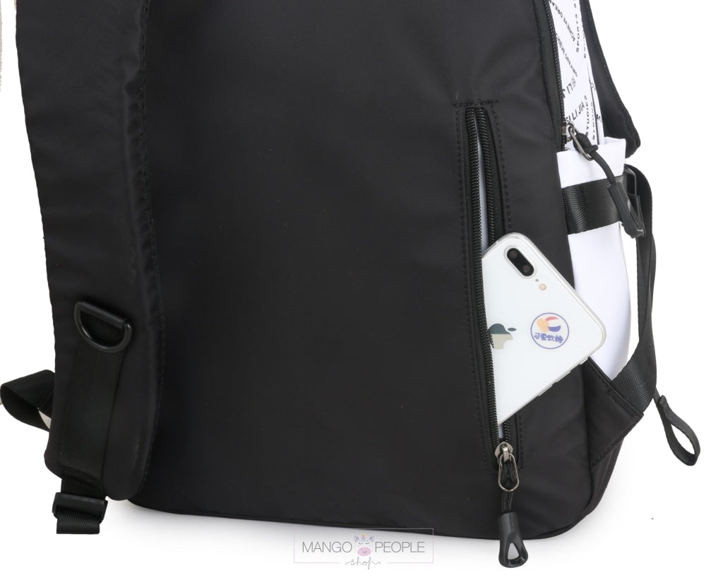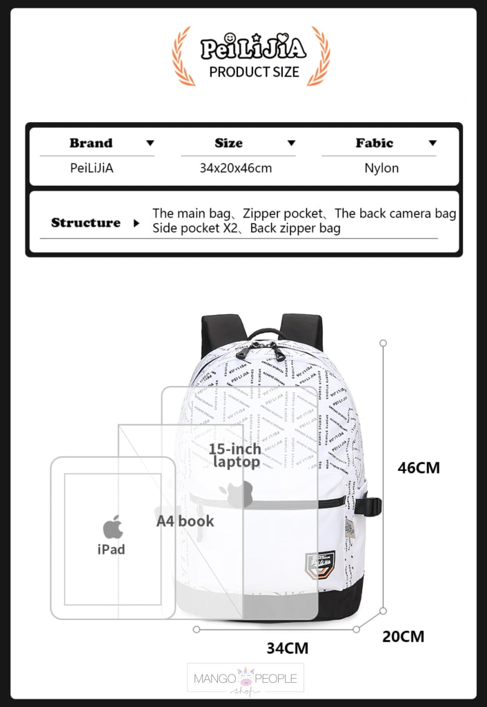 This school , college Backpack features one main zipped compartment, one lunch box compartment, one zipped front pocket, one small inside pocket , 2 separate sections, one backside zip pocket and two side pockets. You can organize your stuff with the differently sized pockets. There is plenty of room for your keys, wallets, cellphone, diary etc.