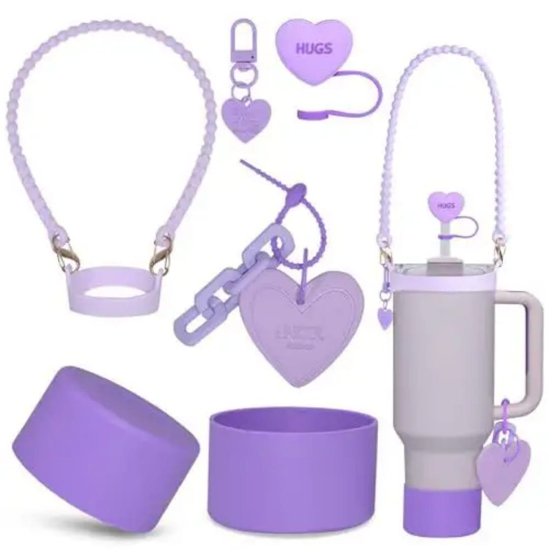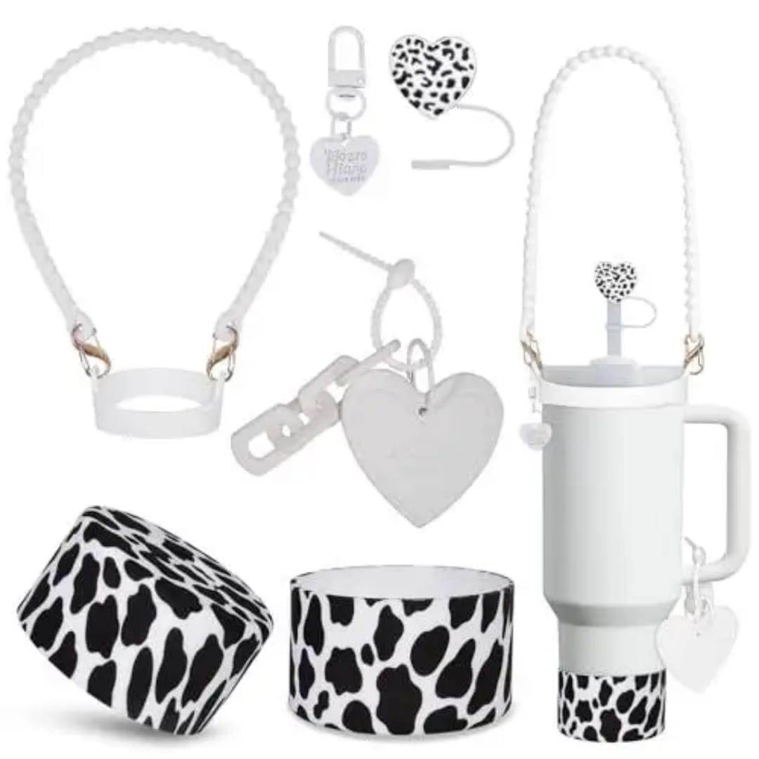 Level up your tumbler game with the Charm Sip Adventure Tumbler Accessory Set — a fun and functional bundle designed to add character and convenience to your daily hydration. This all-in-one set includes adorable charm toppers (like a playful panda and a horseback rider), a cute keychain, leak-stopper plugs, anti-spill silicone boots, and a straw cover — everything you need to customize your tumbler in style. Whether you're out for errands, at the gym, or gifting a friend, this set brings a touch of fun and flair to your favorite cup.