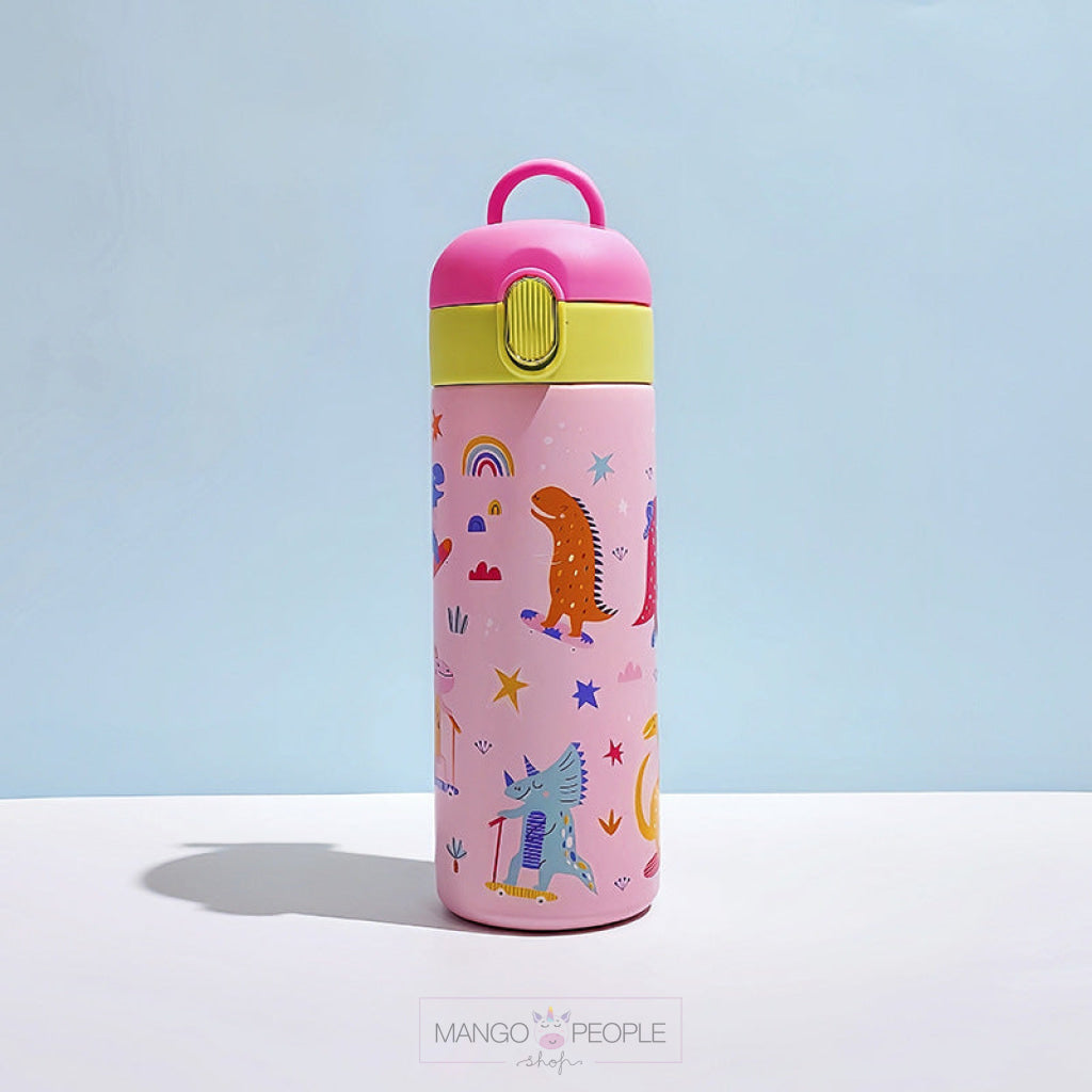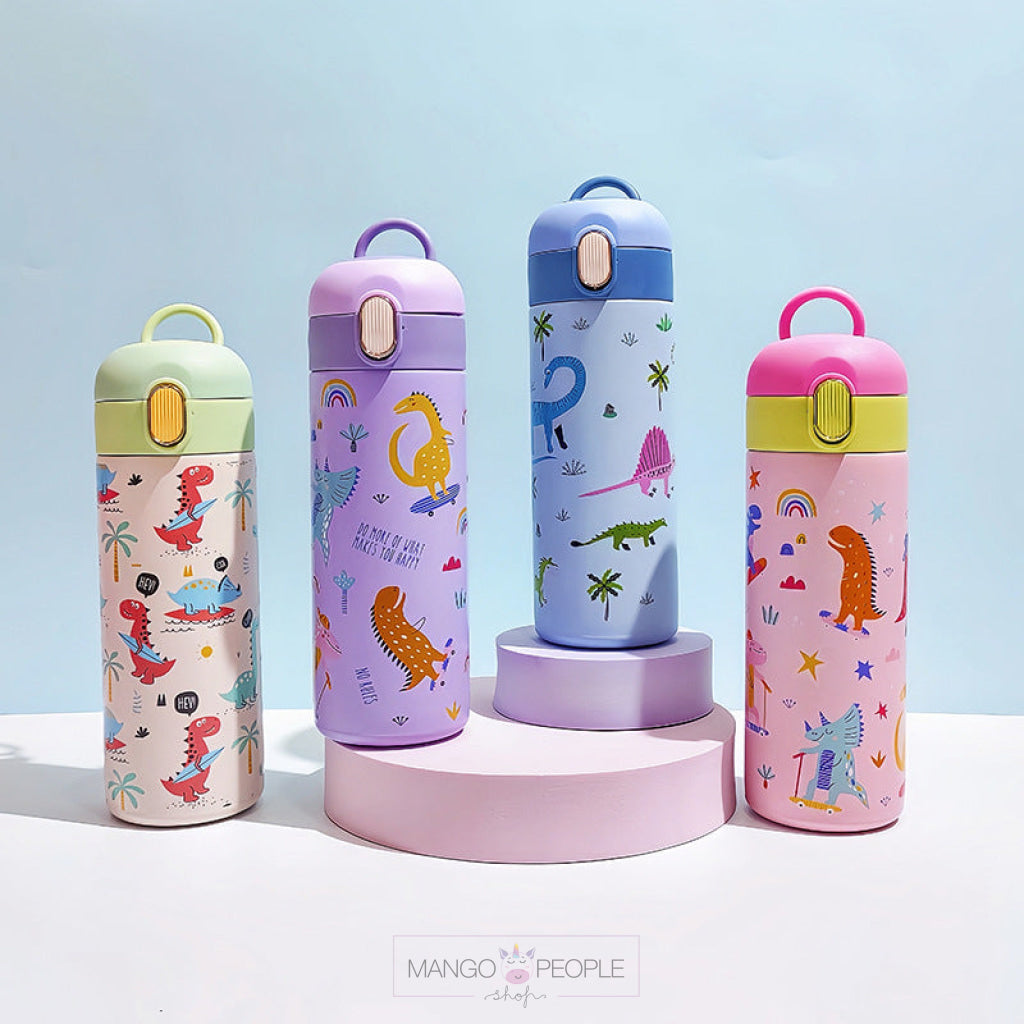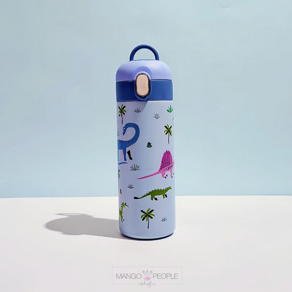 Delight your child with this dinosaur print stainless steel water bottle which is a perfect blend of practicality and fun design, making it a reliable companion for kids' daily activities and an excellent gift choice for various occasions. The dinosaur pattern adds a playful and engaging touch, appealing especially to children. The bottle is compact and fits perfectly in backpack pockets, making it easy to carry for kids. The bottle has simple and efficient design for easy drinking.