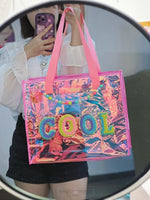 Eye-Catching Dazzling Holographic Design: The Tote bags feature a holographic finish that reflects rainbow colors, along with the different prints that catches the light in a mesmerizing way, ensuring that you stand out from the crowd wherever you go. This Tote bag boasts a mesmerizing holographic laser effect that comes to life under the sun.