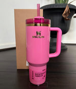 Make hydration fierce and fabulous with the Hydra Glam Quencher – Wicked Pink Edition. This 40oz Stanley Flow  state Tumbler is not just a thirst-buster, it’s a style statement. Coated in a shimmering, electric pink finish with butterfly accents, this beauty is built for bold personalities who stay hydrated in style.