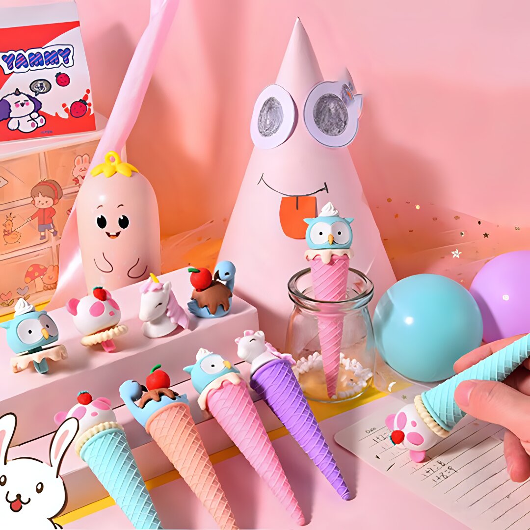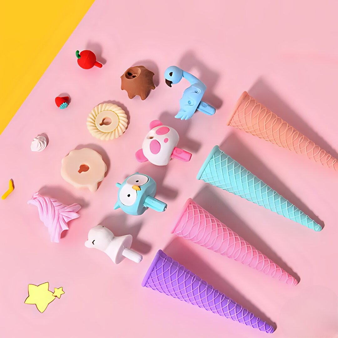 Make homework time fun and error-free with these charming ice-cream cone shaped erasers. Kids will love their cute designs and parents will appreciate their safety and effectiveness. Add these fun and functional erasers to your child's stationery kit today!