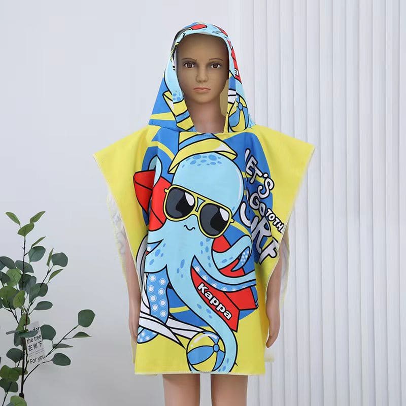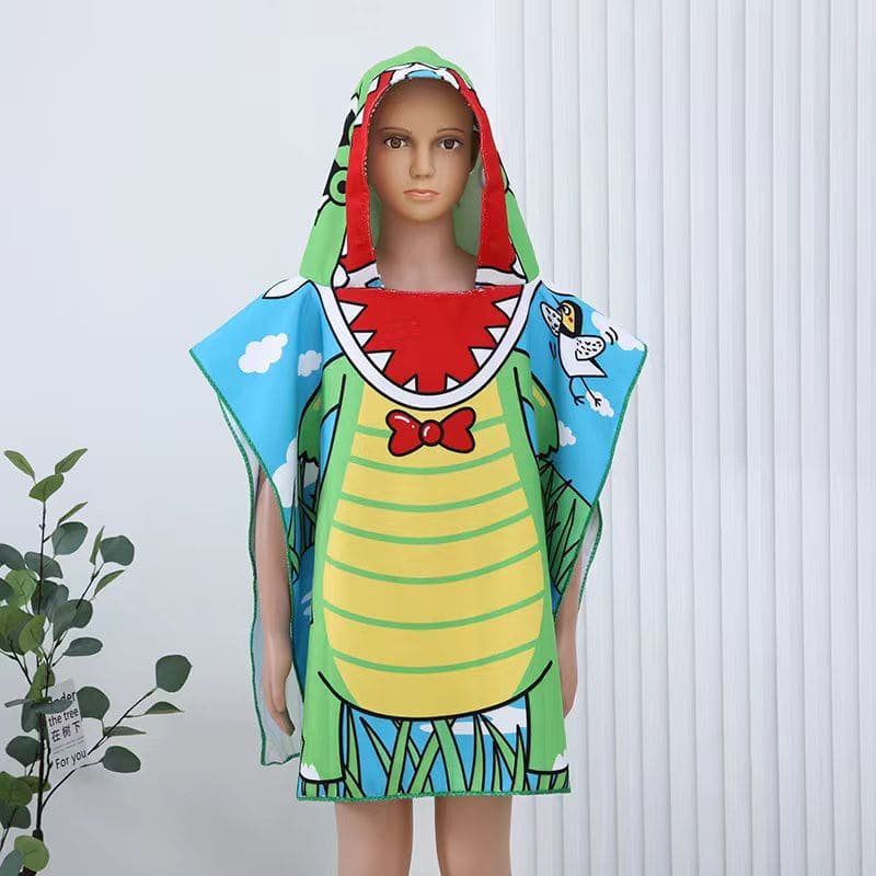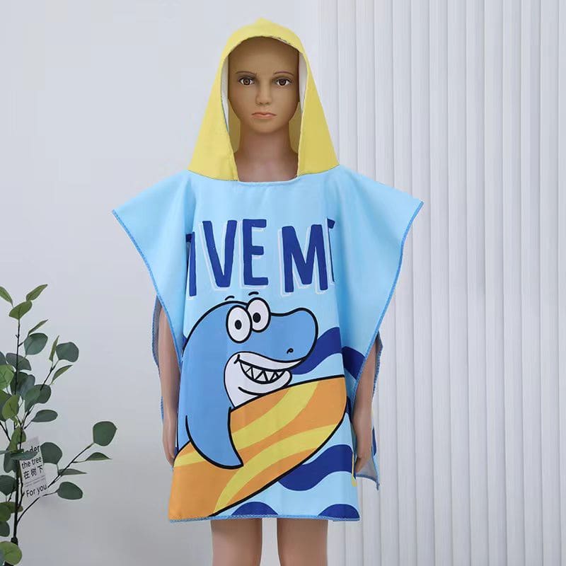 Soft and absorbent hooded poncho towel made from skin-friendly microfiber fabric. Ideal for post-bath, pool, or beach use, offering quick drying and full coverage. Features side openings for easy wear and removal, with a cozy hood to keep kids warm and snug. Lightweight, compact, and perfect for travel or daily use.