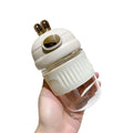 Durable glass bottle wrapped in a soft, protective silicone sleeve for easy grip and drop protection. Features a secure flip‑top lid with integrated silicone straw for effortless sipping, plus a charming handle accent for on‑the‑go carrying. Leak‑proof design and easy‑clean components make it ideal for everyday use at home, school, or outings.
