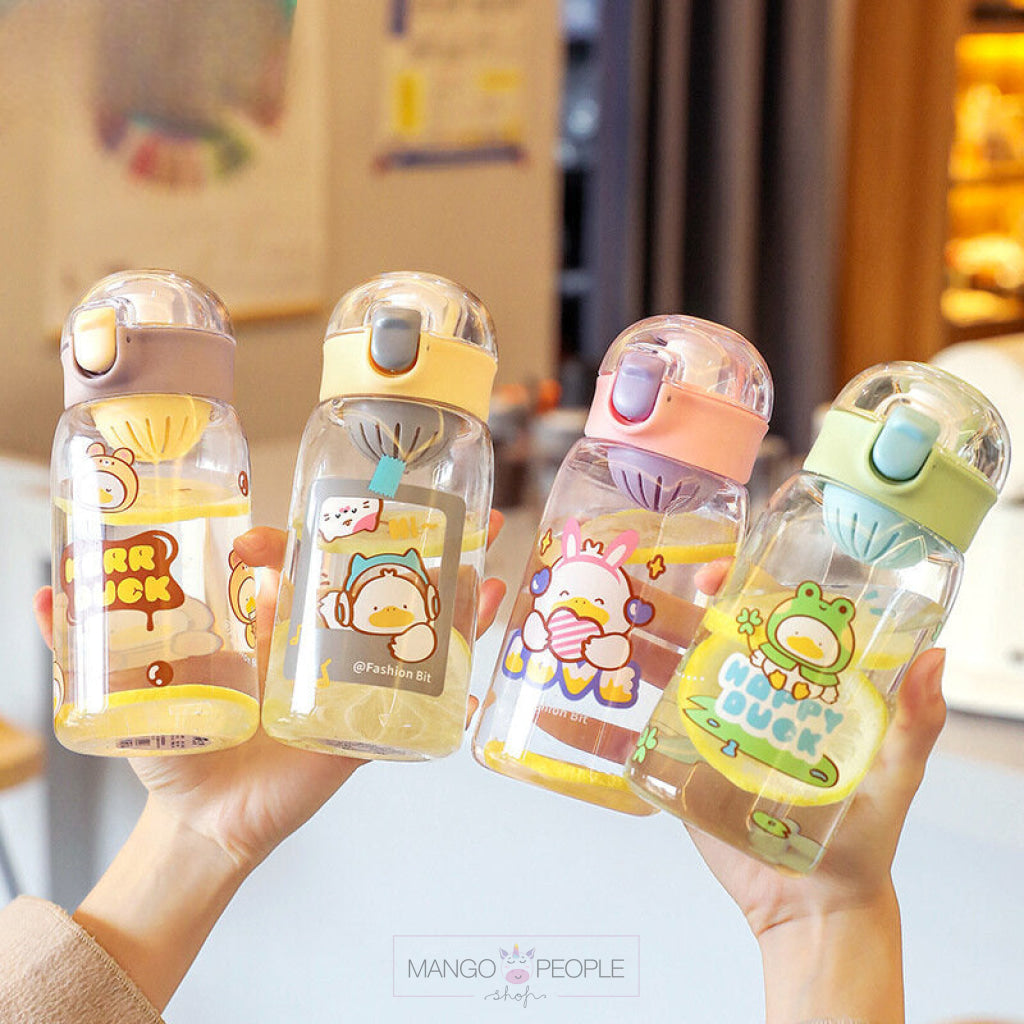 This Happy Duck Water Bottle is a charming and practical accessory designed to bring joy to any adventure. With its adorable duckbill straw and generous 450ml capacity, it's the perfect companion for staying hydrated on the go.