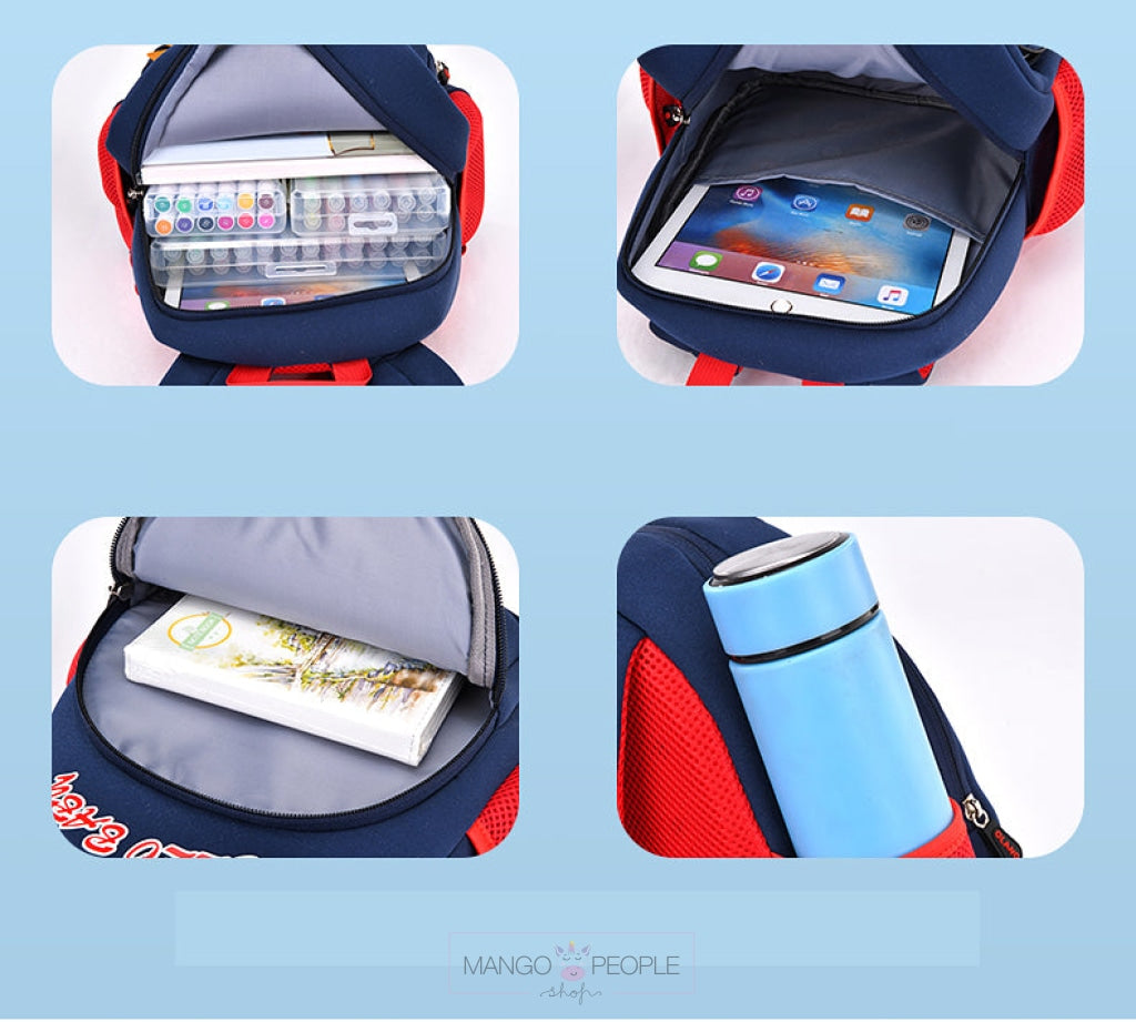 This school backpack features a large main compartment that can accommodate books, notebooks, and other essentials, ensuring your child has everything they need for school. With a big pocket and a mid-size zipper pocket this school bag provides ample storage space for smaller items like pencils, pens, snacks and much more. Our bag also features 2 side pockets for holding water bottles.