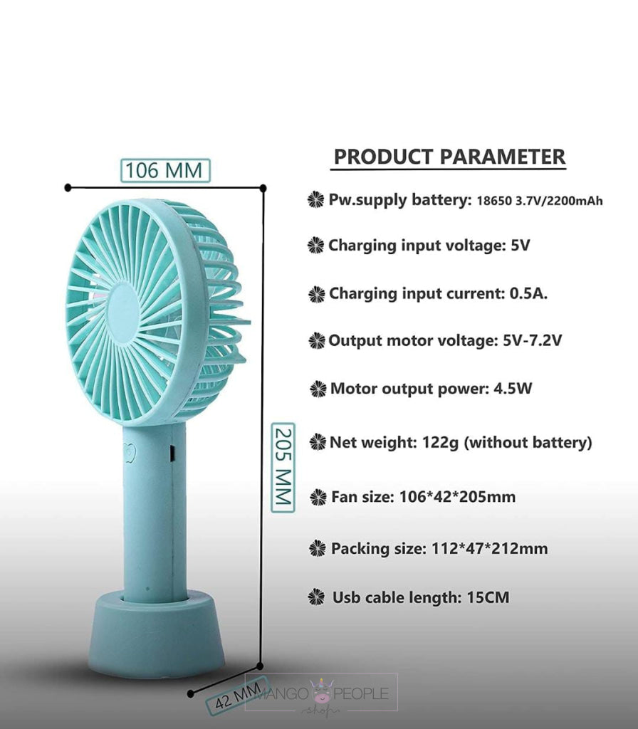 The fan has adjustable speed. Be free to turn up or turn down the Air speed. The fan is superb in performance and does not make any sound. This fan is user friendly with a handgrip design. This fan can be used as a desktop fan or mini table fan. It has 3 adjustable speeds which can be switched easily by pressing the button. This mini fan can be a good helper for your hot flashes.