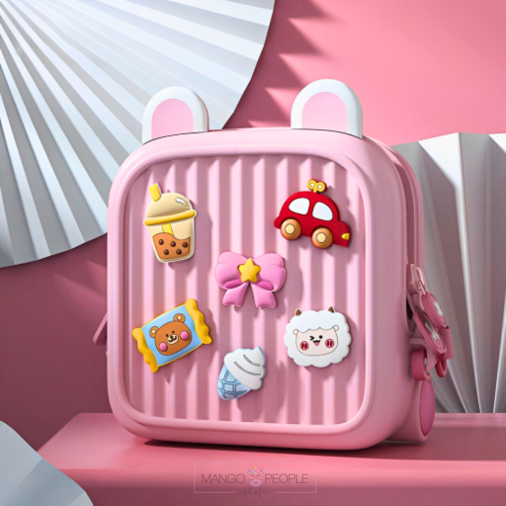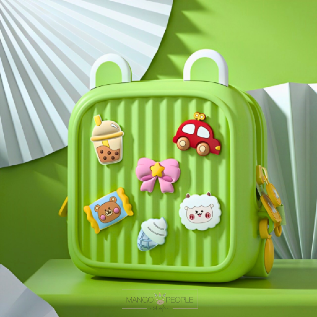 A compact and durable backpack designed for young children. Made with high-quality, water-resistant EVA material, it provides structure and protection for everyday essentials. Features include a full zip-around closure, adjustable straps, and a molded exterior surface compatible with attachable accessories. Perfect for casual outings, daycare, or as a lunch bag.