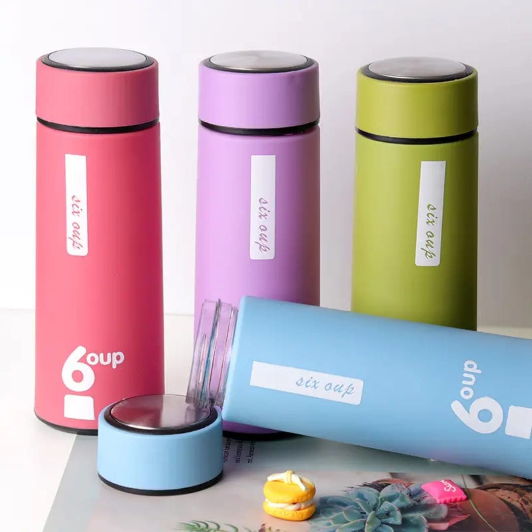 Double-walled vacuum-insulated stainless steel bottle ideal for maintaining your beverages at the perfect temperature—hot or cold—for hours. Sleek, lightweight, and portable with a leak-proof lid and a non-slip base, it's perfect for office, travel, gym, or everyday hydration.