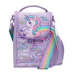 Description: Make lunchtime magical with this adorable insulated lunch bag. It features a vibrant design, adjustable rainbow strap, side pocket for bottles, and includes customisable name tags. Perfect for school, picnics, or on-the-go snacking!